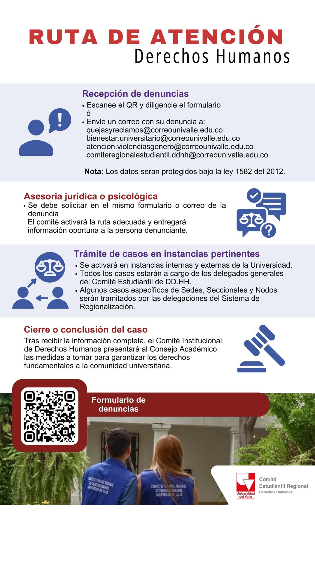 El Comité de Derechos Humanos, tiene como objeto principal conocer y coordinar con el Ministerio del Interior y las demás entidades encargadas de la protección de los Derechos Humanos, las gestiones dirigidas a atender los casos que afecten o puedan llegar a afectar la integridad física de los servidores públicos en el ejercicio de sus funciones y estudiantes regulares de la Universidad del Valle. Este Comité recomendará al Rector, las acciones específicas para cada caso.