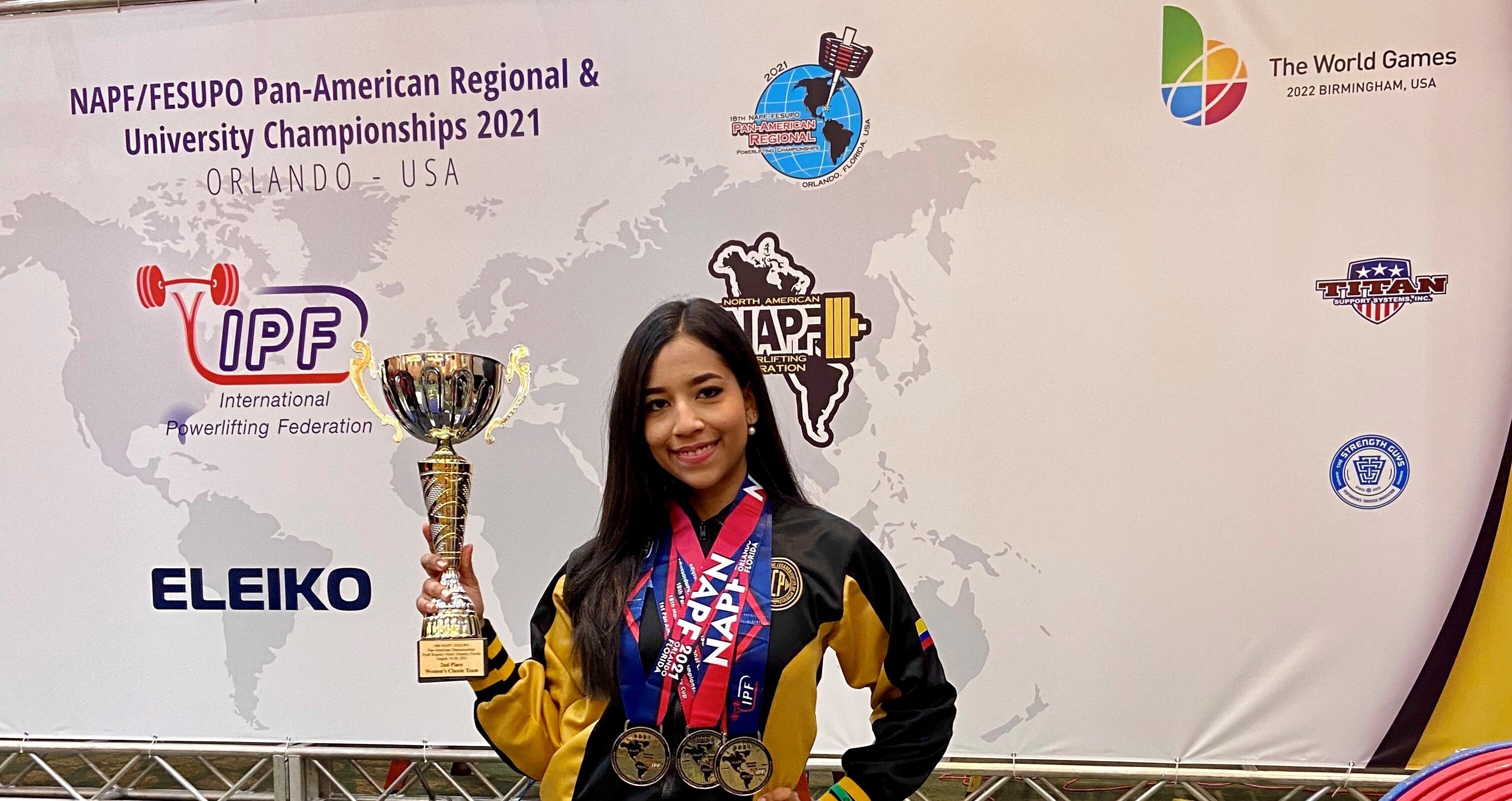 Valentina Cano, estudiante de cuarto semestre del programa de Ingeniería de Alimentos, participó en el Campeonato Panamericano de Powerlifting que se celebró en Orlando, Florida, el pasado mes de agosto.