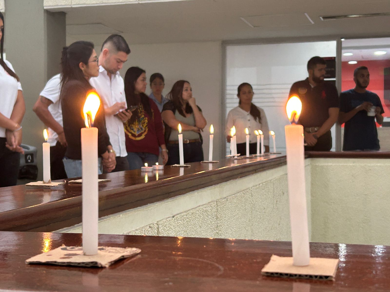 Velas, dibujos, reuniones de apoyo, canciones y minutos de silencio fueron parte de los homenajes que se ofrecieron por parte de la comunidad universitaria tras el fallecimiento de Juan Esteban Cedeño Loaiza, estudiante de segundo semestre de Ingeniería de Sistemas. Estudiantes, funcionarios, funcionarias, docentes y directivas se organizaron respondiendo al llamado de la Vicerrectoría de Bienestar para el lunes 25 de agosto: hacer un minuto de silencio por la vida de Juan Esteban.