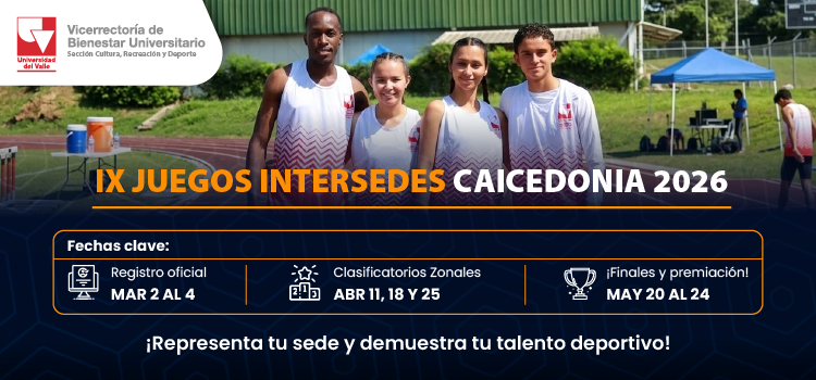 Con el propósito de aportar al bienestar estudiantil mediante la participación organizada en actividades deportivas, la promoción de estilos de vida saludables y el desarrollo de competencias socioemocionales como el trabajo en equipo, la disciplina y el liderazgo, las Vicerrectorías de Bienestar Universitario y de Regionalización hacen posible la realización de los IX Juegos Intersedes – Caicedonia 2026.